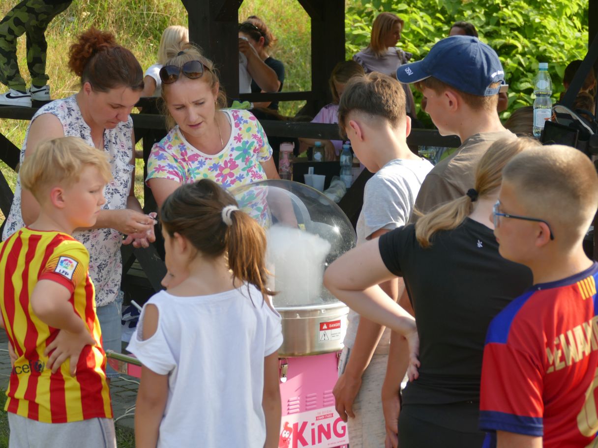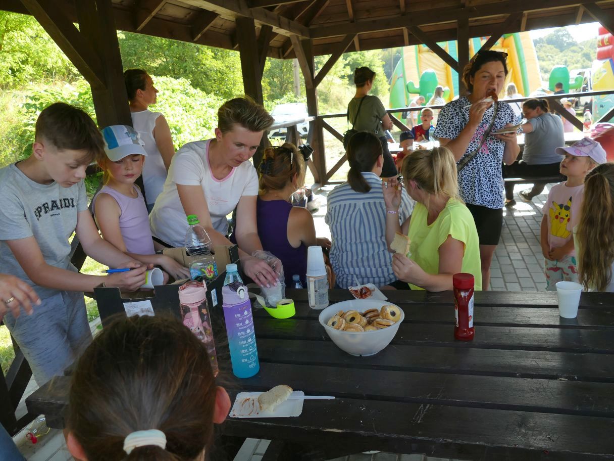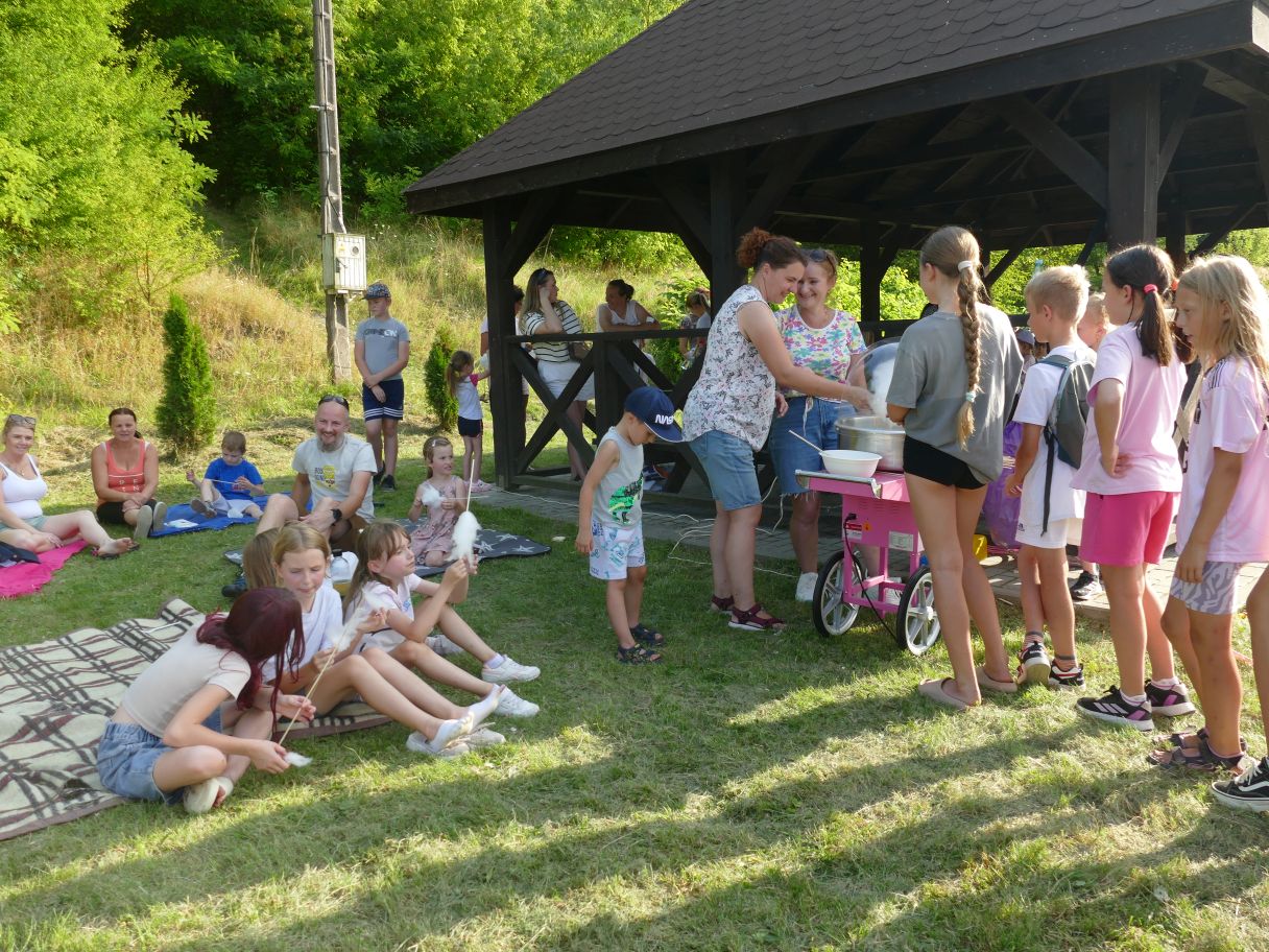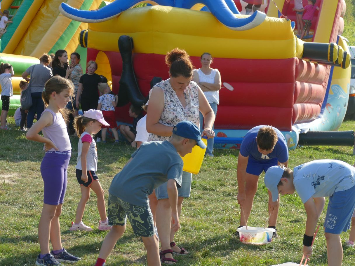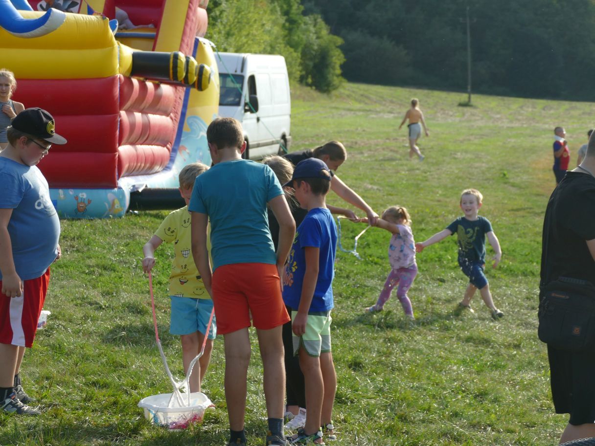 Młodsze dzieci pojawiły się z rodzicami, co dodatkowo zapewniło bezpieczną zabawę. Puszczaliśmy mega bańki mydlane, było skakanie w workach i mnóstwo innych atrakcji. Pożegnaliśmy czas odpoczynku i beztroski, za kilka dni powrócą szkolne obowiązki.