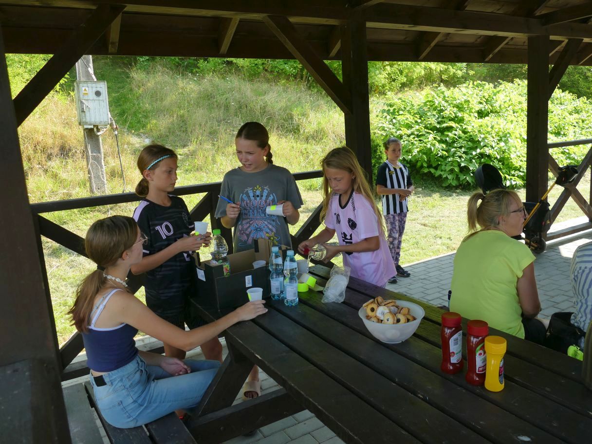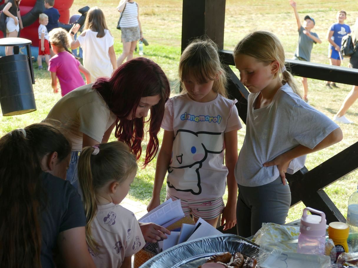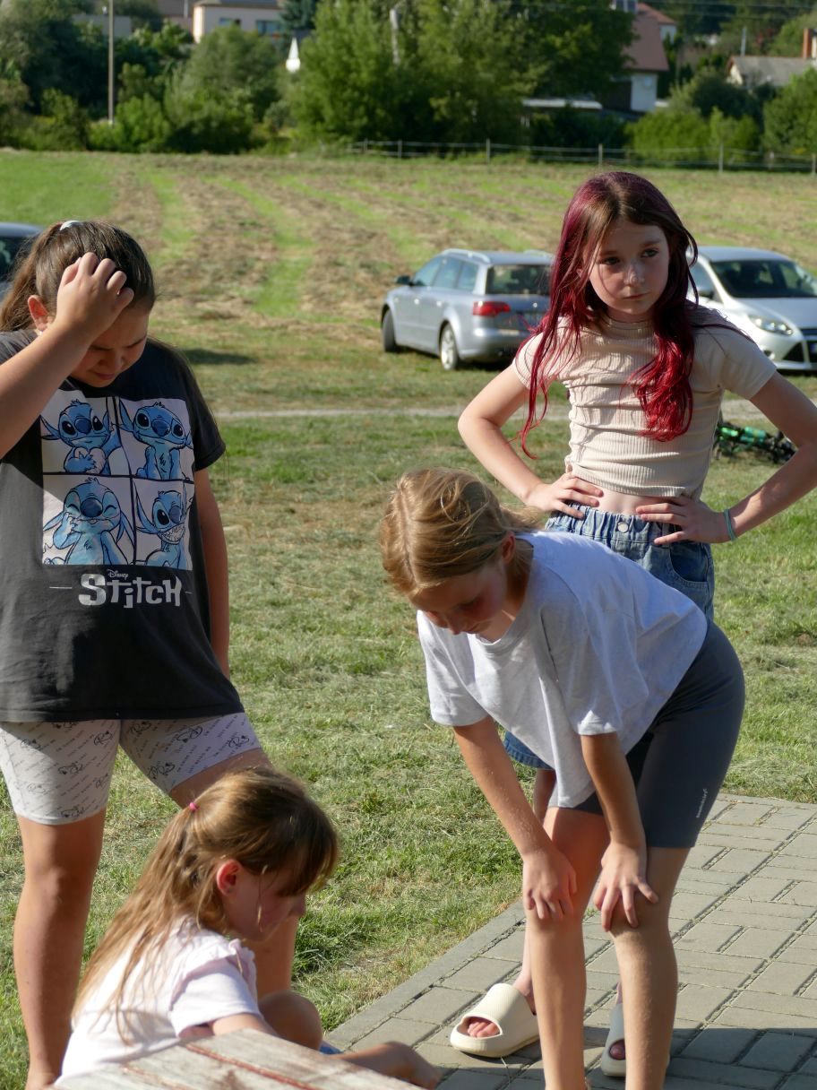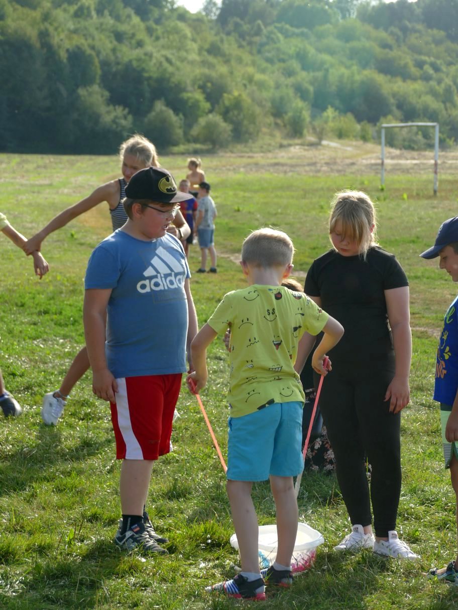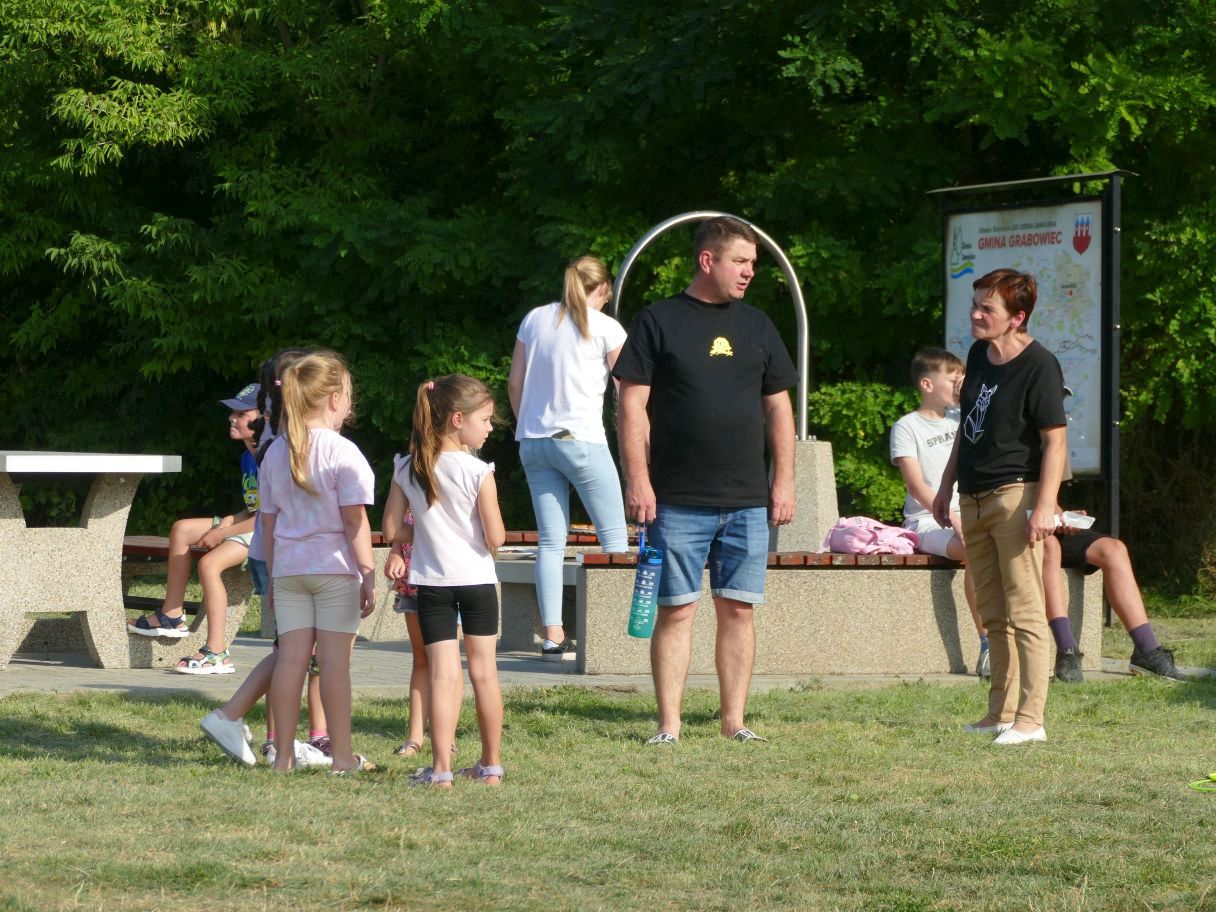 Młodsze dzieci pojawiły się z rodzicami, co dodatkowo zapewniło bezpieczną zabawę. Puszczaliśmy mega bańki mydlane, było skakanie w workach i mnóstwo innych atrakcji. Pożegnaliśmy czas odpoczynku i beztroski, za kilka dni powrócą szkolne obowiązki.