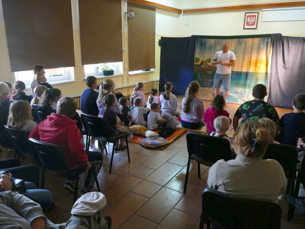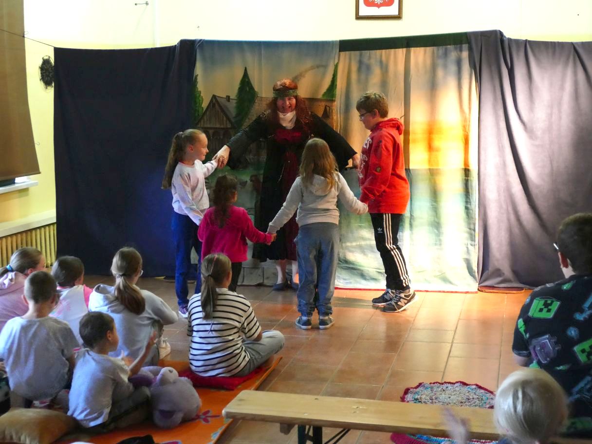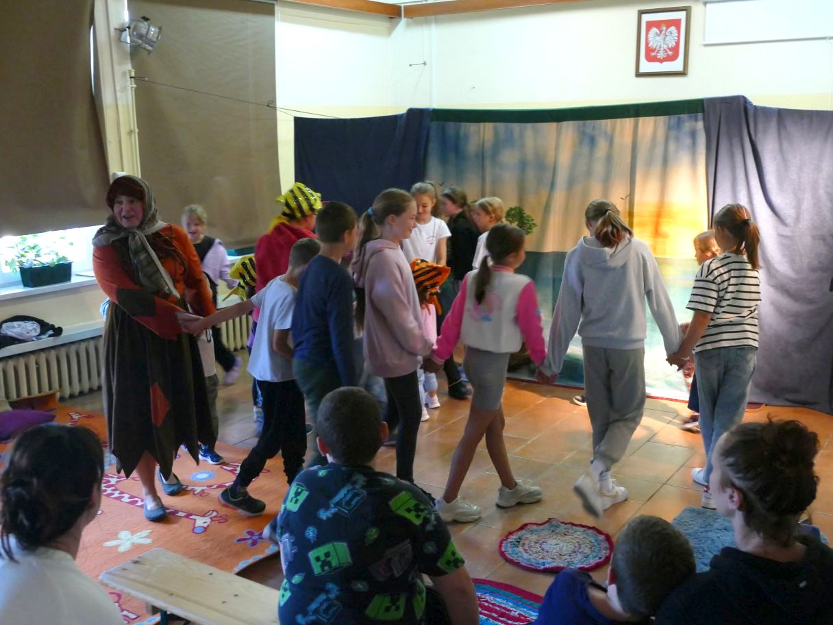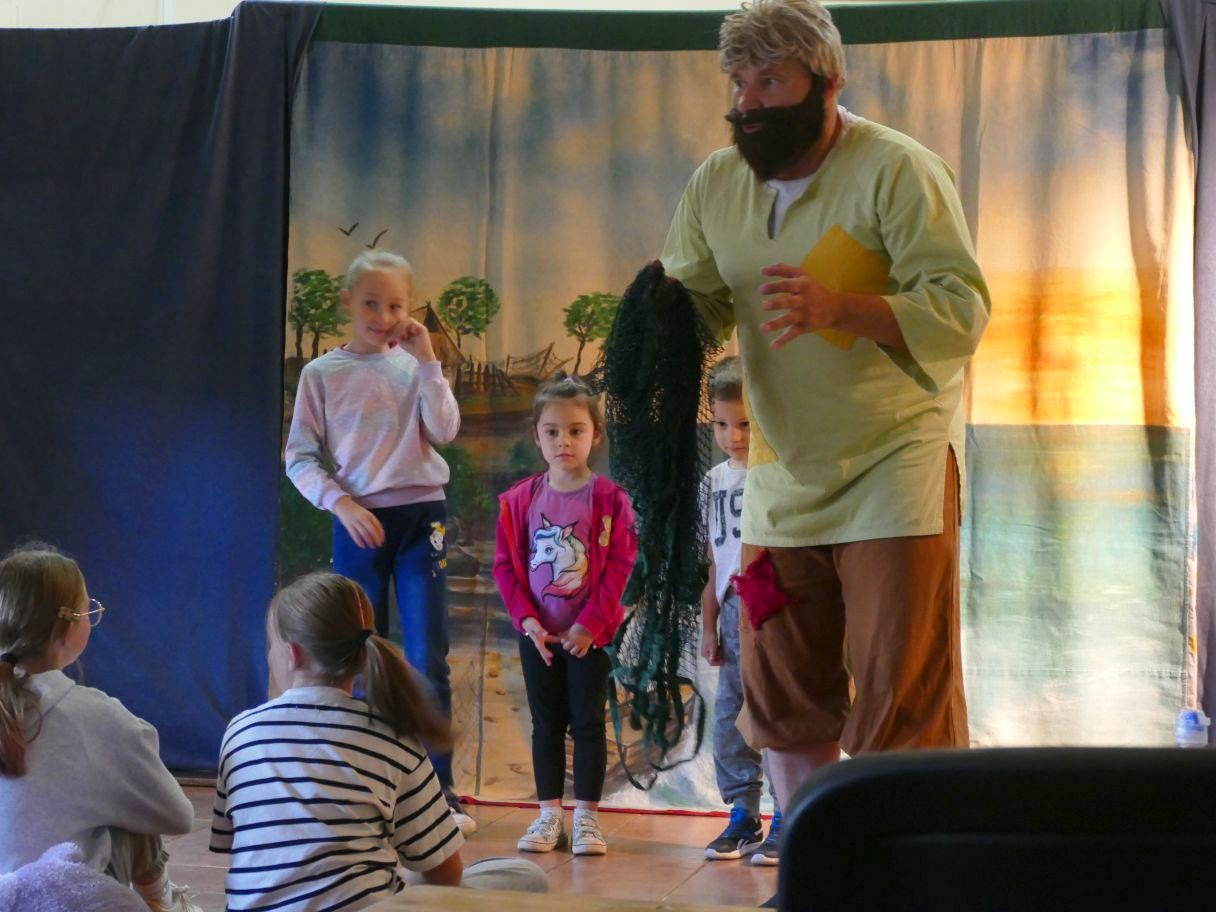 W ostatnim tygodniu wakacji 25 sierpnia 2025 roku w Gminnym Ośrodku Kultury w Grabowcu mieliśmy przyjemność obejrzeć teatralną adaptację bajki „Złota Rybka” Aleksandra Puszkina z oryginalną scenografią oraz przepięknymi kostiumami.