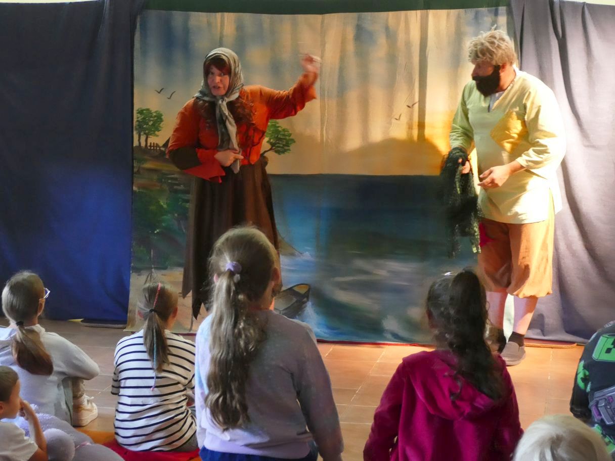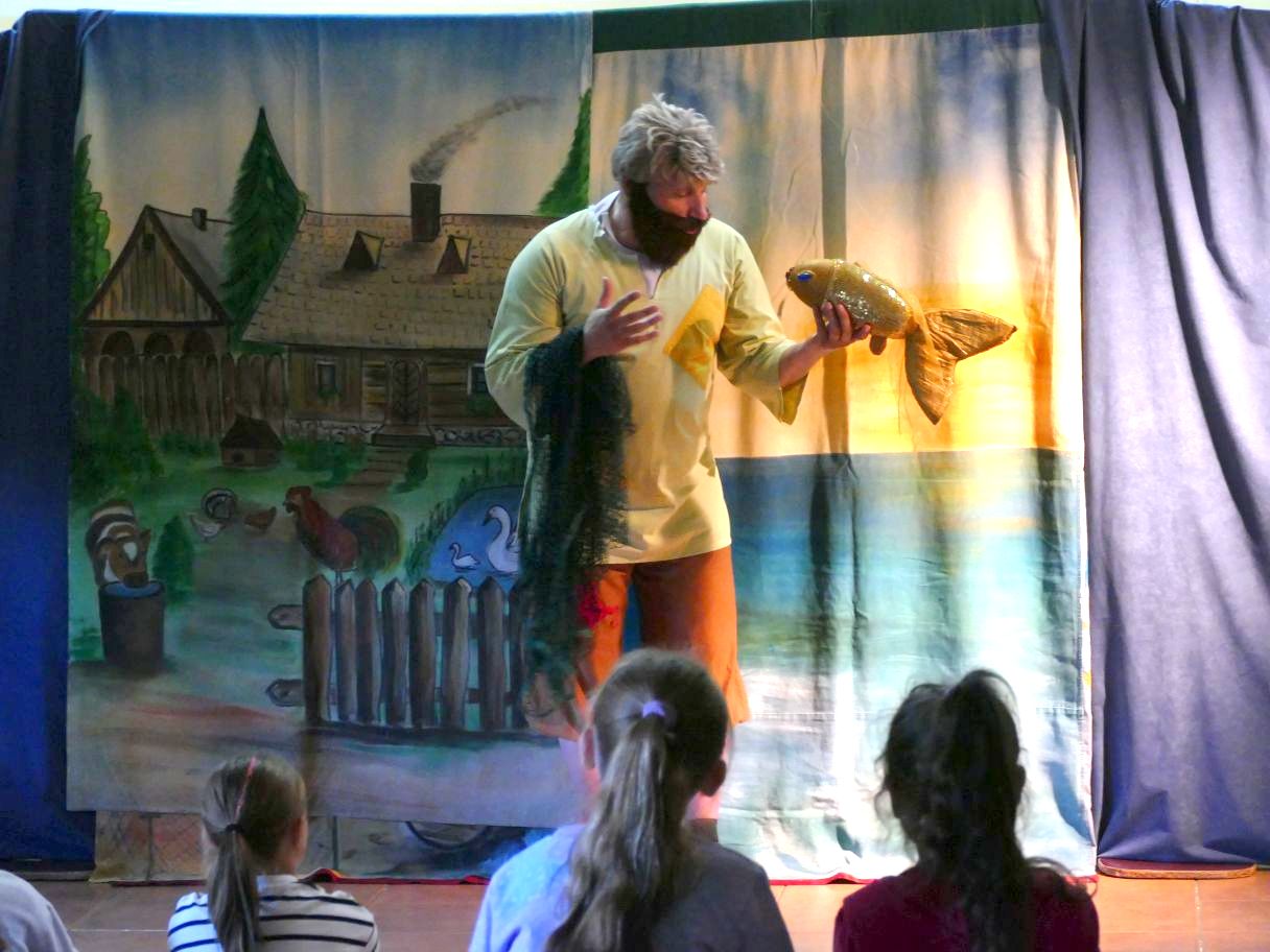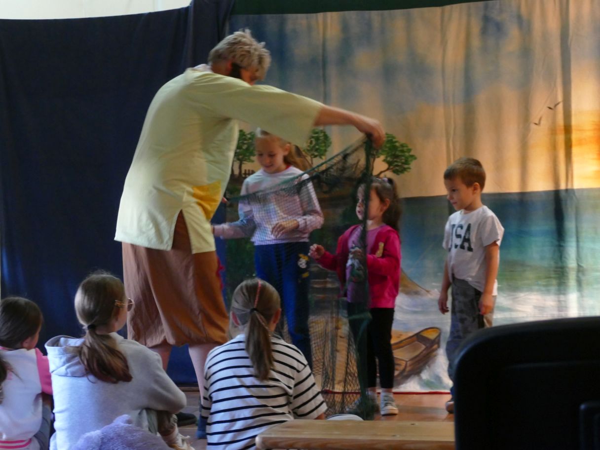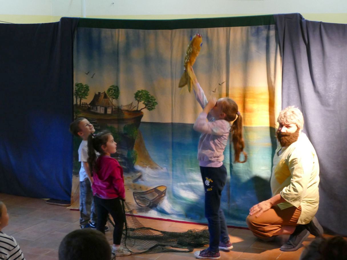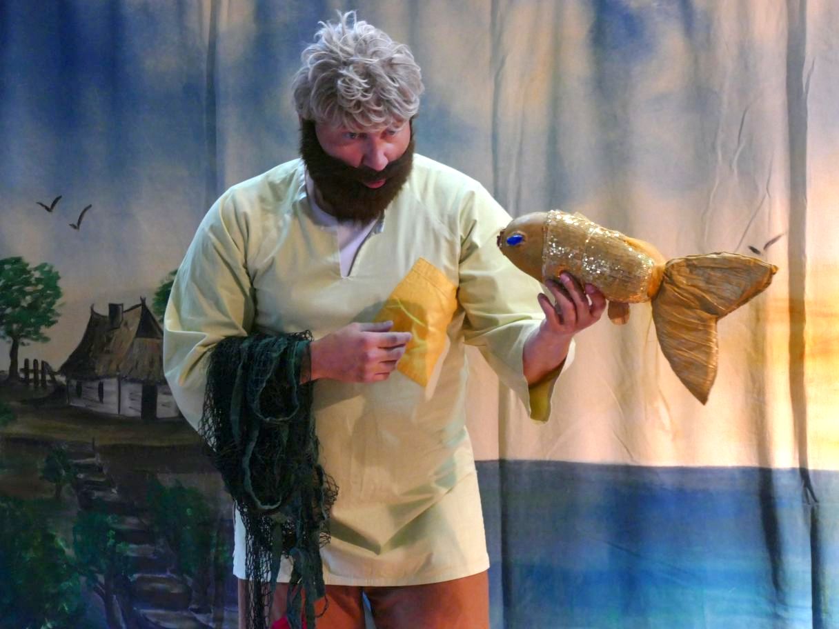 Zobaczyliśmy pełne humoru przedstawienie o zachłannej rybaczce i poczciwym rybaku, którzy mieszkali w ubogiej chacie nad brzegiem morza. Pewnego dnia rybak złowił Złotą Rybkę, która potrafiła mówić. Poprosiła rybaka, by zlitował się nad nią i wypuścił ją z powrotem do morza. W zamian za przysługę obiecała spełnić trzy życzenia. Opowieść uczyła najmłodszych szacunku i uczciwości, przestrzega przed zachłannością.