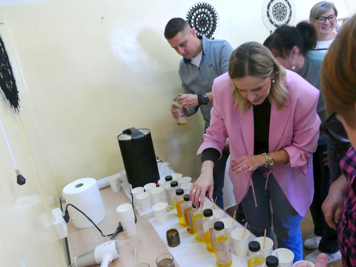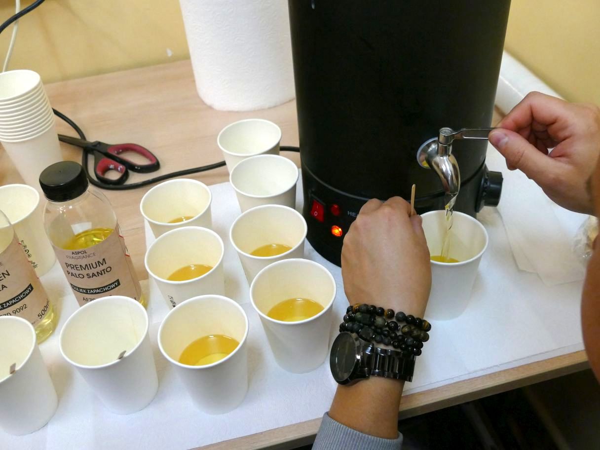 Słoneczna, polska jesień jest piękna, jednak często są także dni pochmurne, z nieba siąpi deszcz a my najchętniej schowalibyśmy się pod kocem z dobrą książką. Właśnie z myślą o poprawie nastroju w długie jesienne wieczory, pani Joanna Patroń razem z mężem, przygotowali pachnące warsztaty „w ramach sztuki”, na których wykonaliśmy świece z wosku sojowego, z dodatkiem wybranego zapachu. Poza praktyką, zdobyłyśmy także dużo informacji i mnóstwo dobrego humoru na cały dzień.