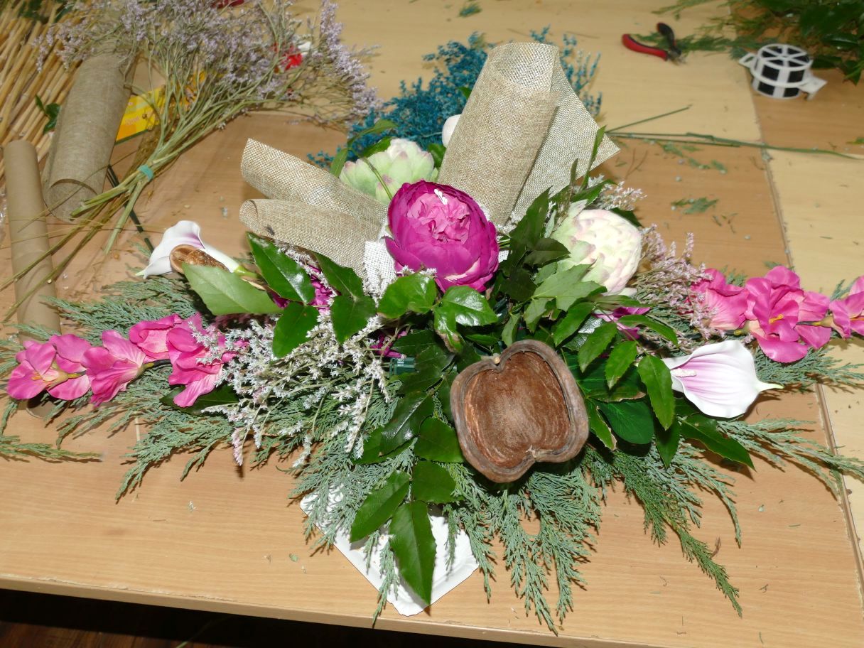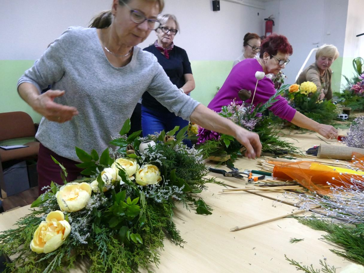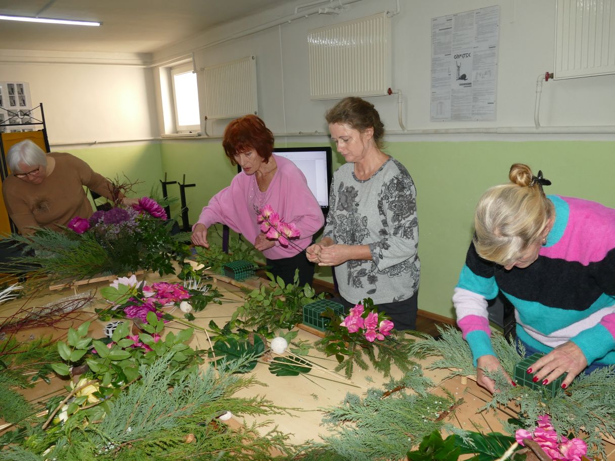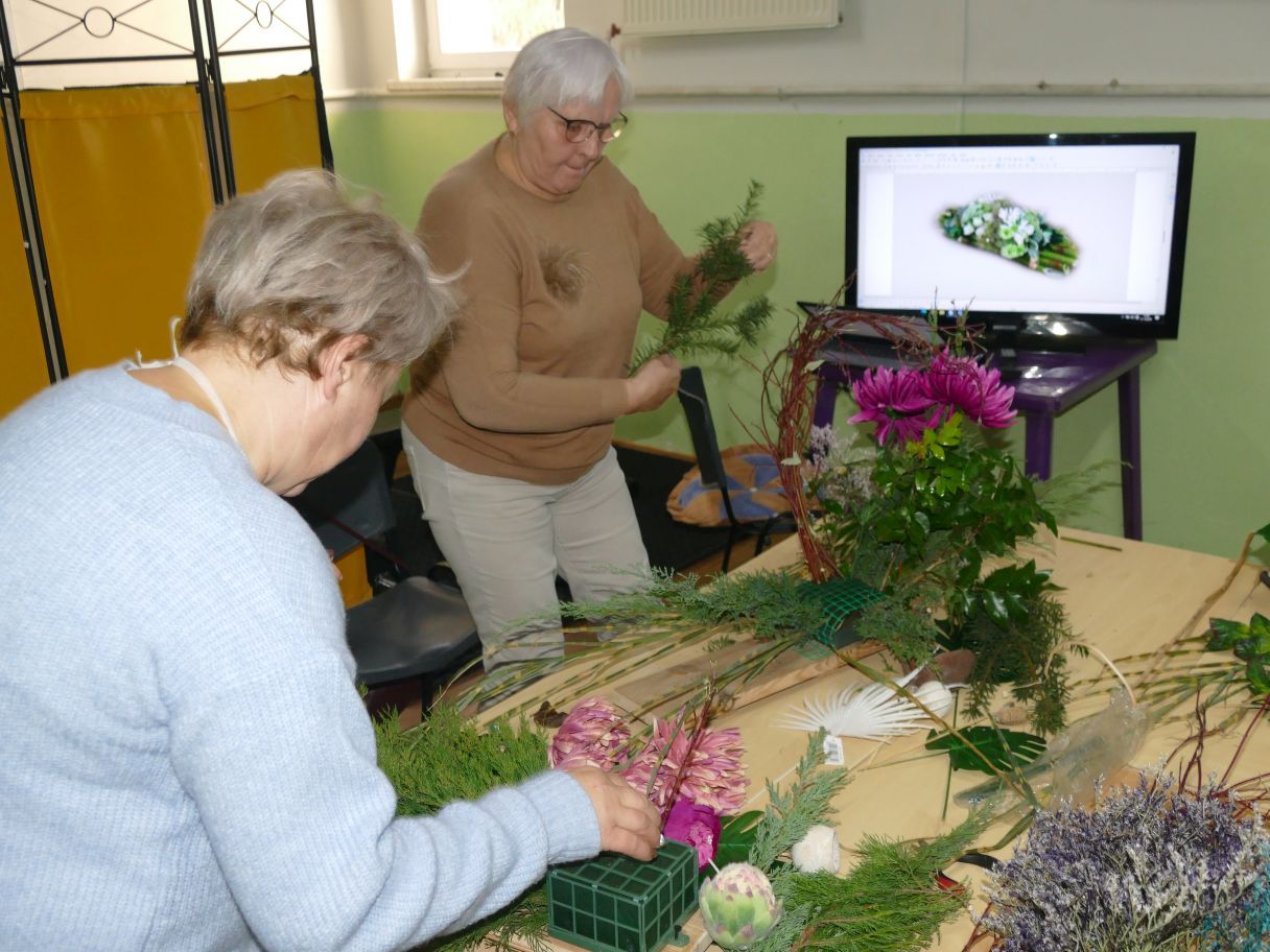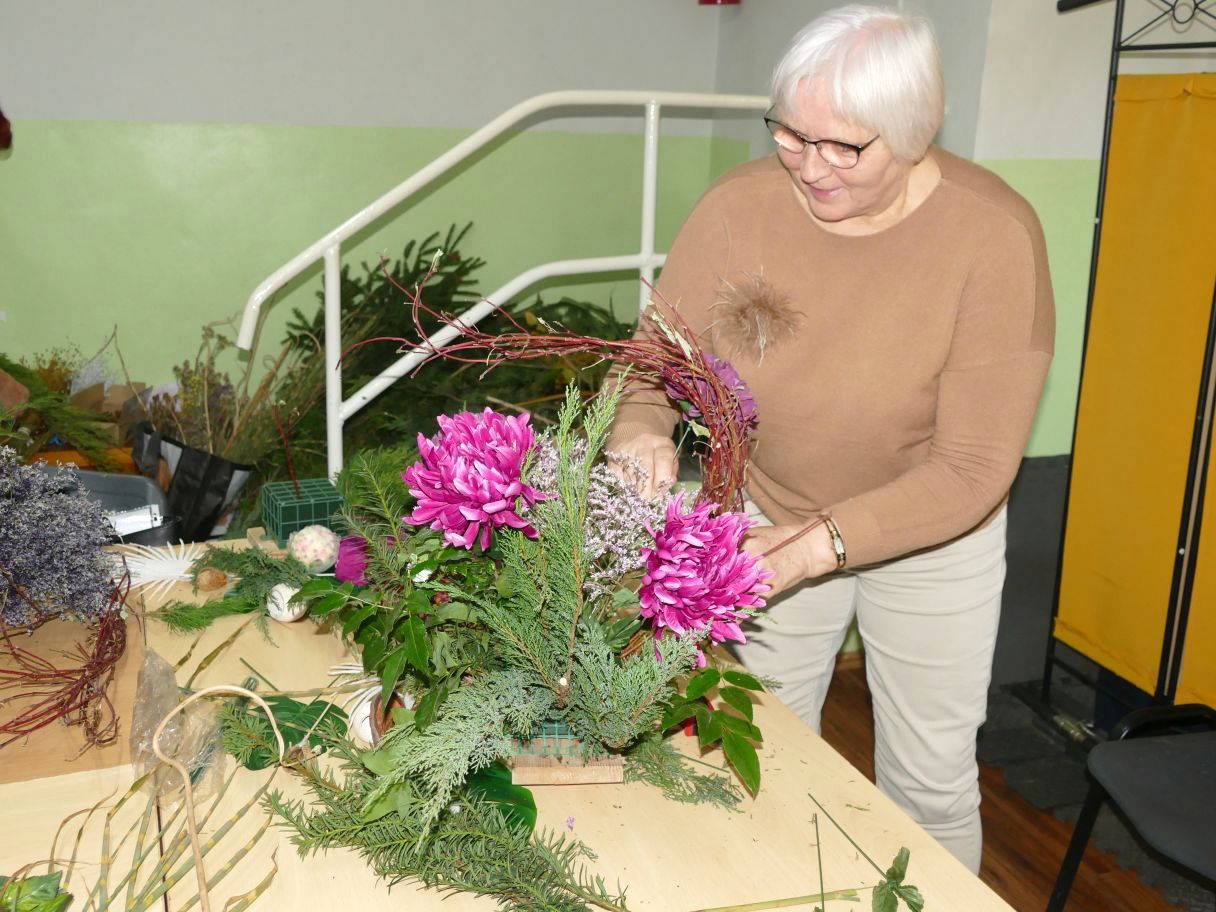 Gminny Ośrodek Kultury w Grabowcu, zorganizował pachnące świerkiem warsztaty, podczas których powstały oryginalne ozdoby na groby naszych bliskich. Zamysłem artystycznym było wykorzystanie naturalnego materiału roślinnego, czy to w formie zielonych gałązek igliwia, cz też pod postacią suszu. Do naszych stroików użyliśmy 50 centymetrowej deseczki, do której zamocowaliśmy floret z gąbką do układania żywego materiału florystycznego. Nie zabrakło także sztucznych, jesiennych kwiatów podkreślających tematykę stroików. Uczestnicy otrzymali wskazówki dotyczące rodzajów kompozycji, doboru i znaczenia barw, jak również pomoc w pracy twórczej. Efekty naszych działań prezentujemy poniżej...