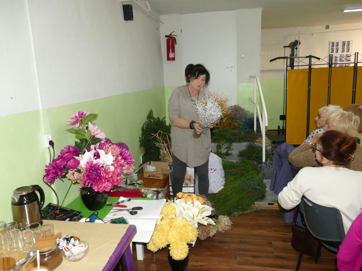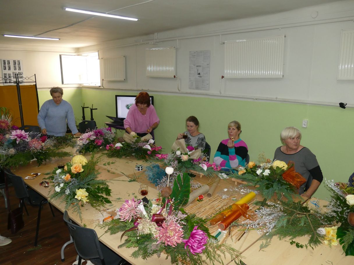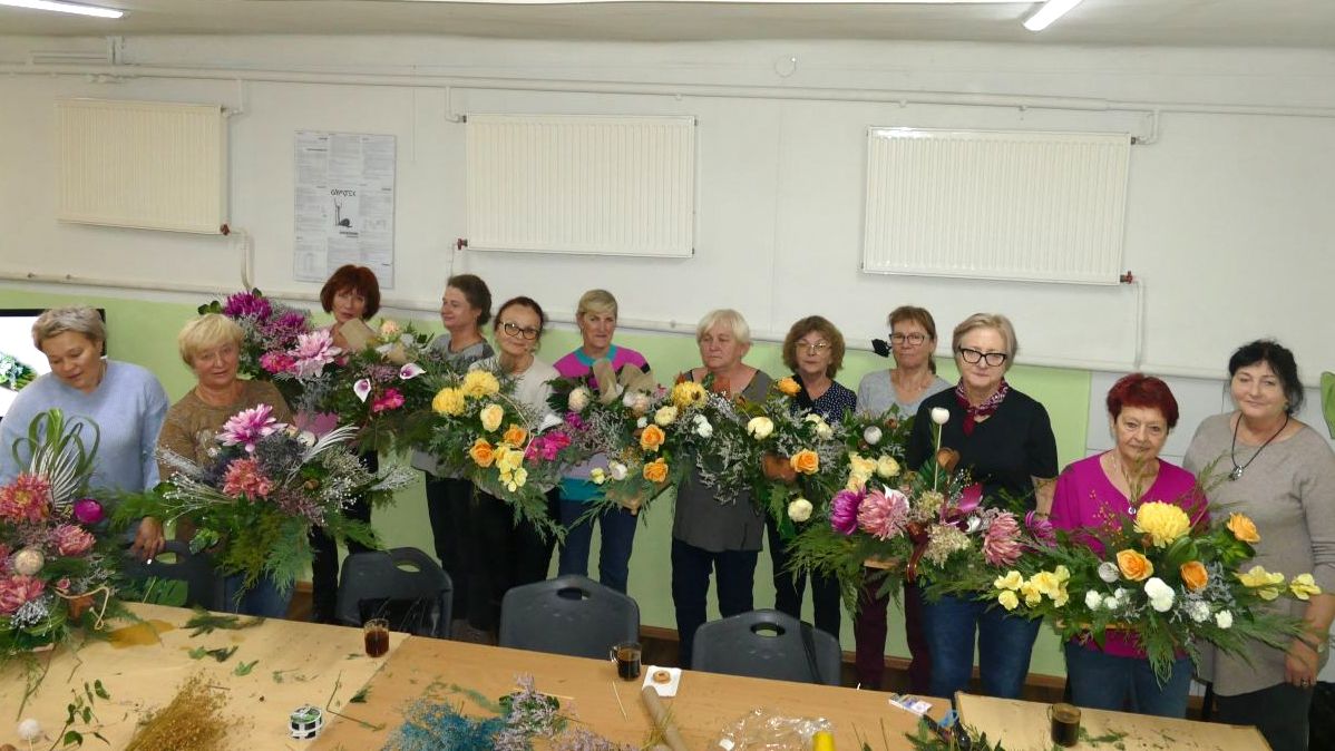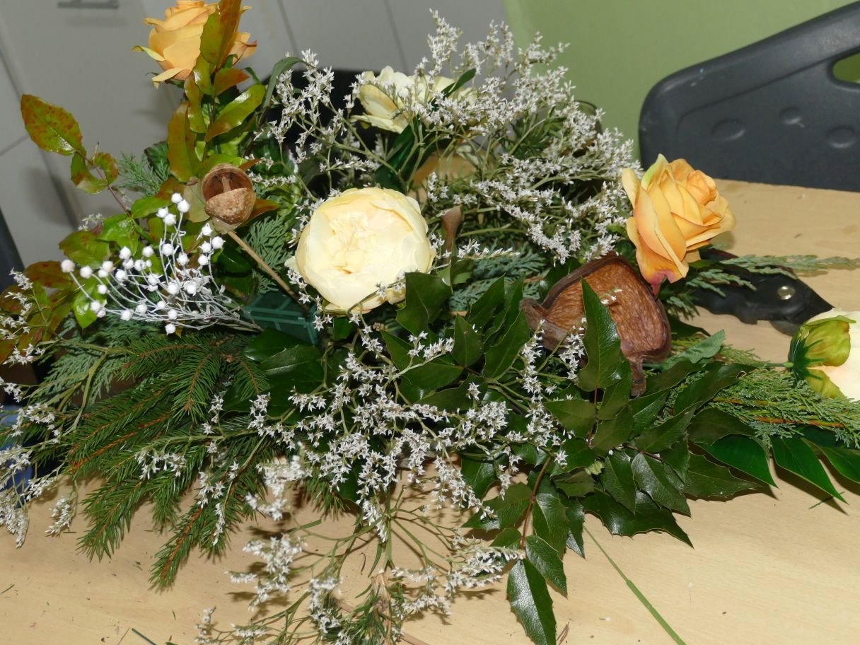 Gminny Ośrodek Kultury w Grabowcu, zorganizował pachnące świerkiem warsztaty, podczas których powstały oryginalne ozdoby na groby naszych bliskich. Zamysłem artystycznym było wykorzystanie naturalnego materiału roślinnego, czy to w formie zielonych gałązek igliwia, cz też pod postacią suszu. Do naszych stroików użyliśmy 50 centymetrowej deseczki, do której zamocowaliśmy floret z gąbką do układania żywego materiału florystycznego. Nie zabrakło także sztucznych, jesiennych kwiatów podkreślających tematykę stroików. Uczestnicy otrzymali wskazówki dotyczące rodzajów kompozycji, doboru i znaczenia barw, jak również pomoc w pracy twórczej. Efekty naszych działań prezentujemy poniżej...