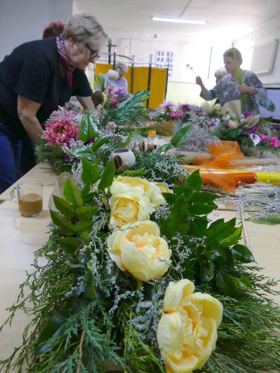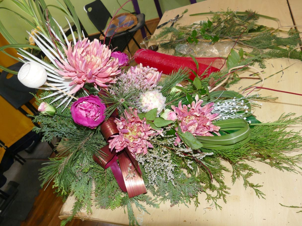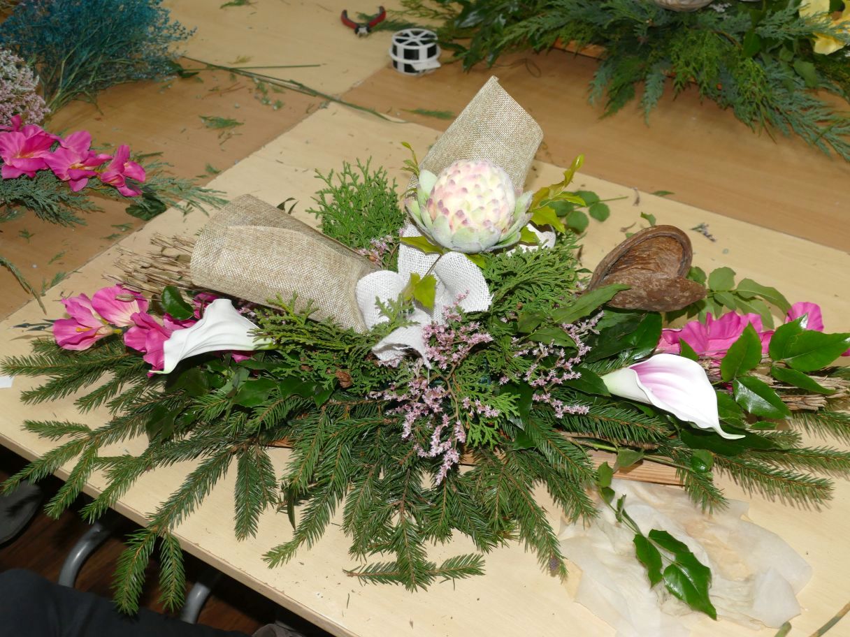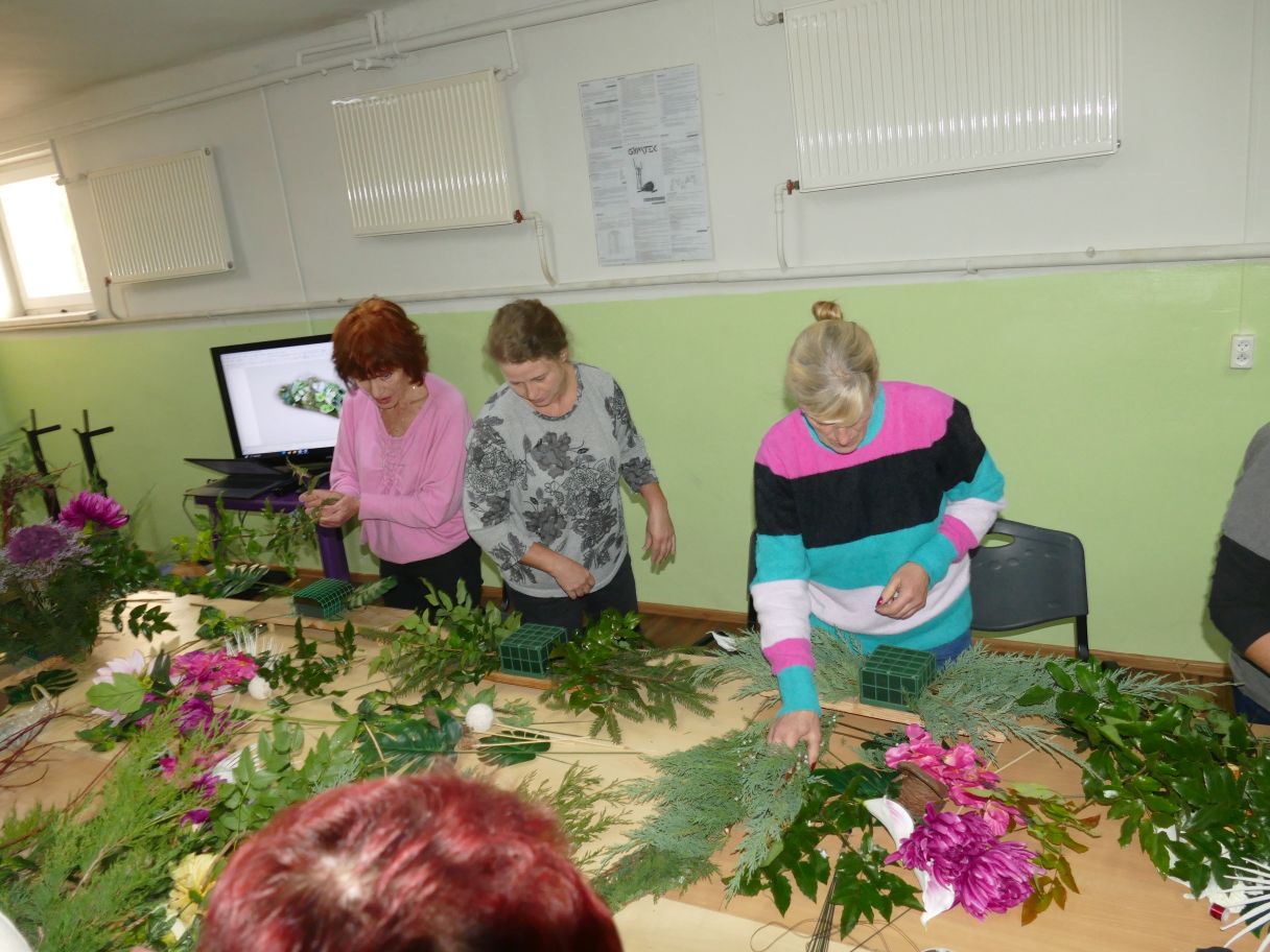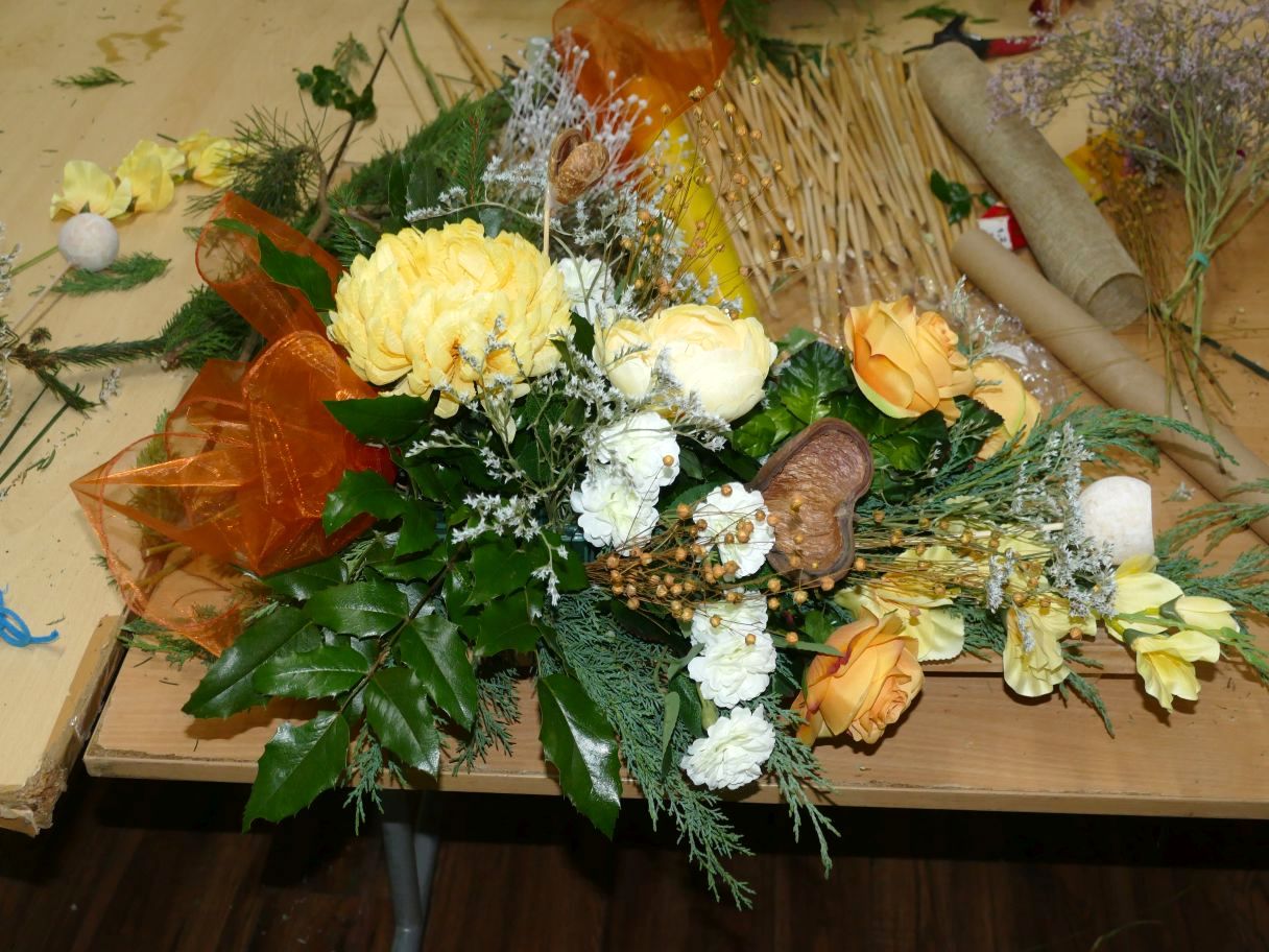 Gminny Ośrodek Kultury w Grabowcu, zorganizował pachnące świerkiem warsztaty, podczas których powstały oryginalne ozdoby na groby naszych bliskich. Zamysłem artystycznym było wykorzystanie naturalnego materiału roślinnego, czy to w formie zielonych gałązek igliwia, cz też pod postacią suszu. Do naszych stroików użyliśmy 50 centymetrowej deseczki, do której zamocowaliśmy floret z gąbką do układania żywego materiału florystycznego. Nie zabrakło także sztucznych, jesiennych kwiatów podkreślających tematykę stroików. Uczestnicy otrzymali wskazówki dotyczące rodzajów kompozycji, doboru i znaczenia barw, jak również pomoc w pracy twórczej. Efekty naszych działań prezentujemy poniżej...